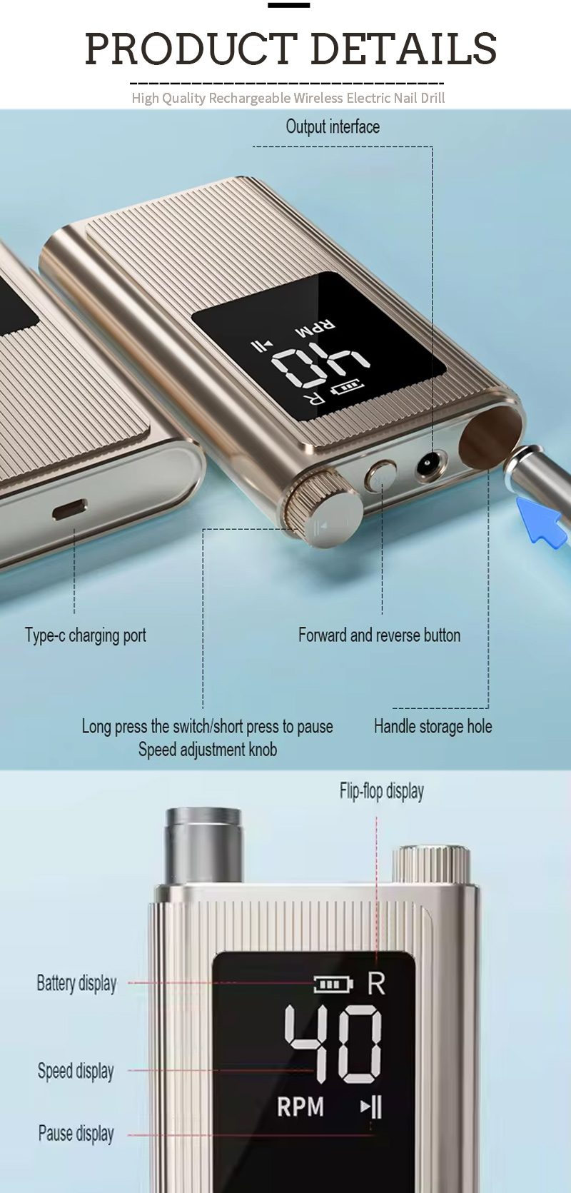 | Details zum professionellen Hochgeschwindigkeits-Nagelbohrer mit 40.000 U/min |