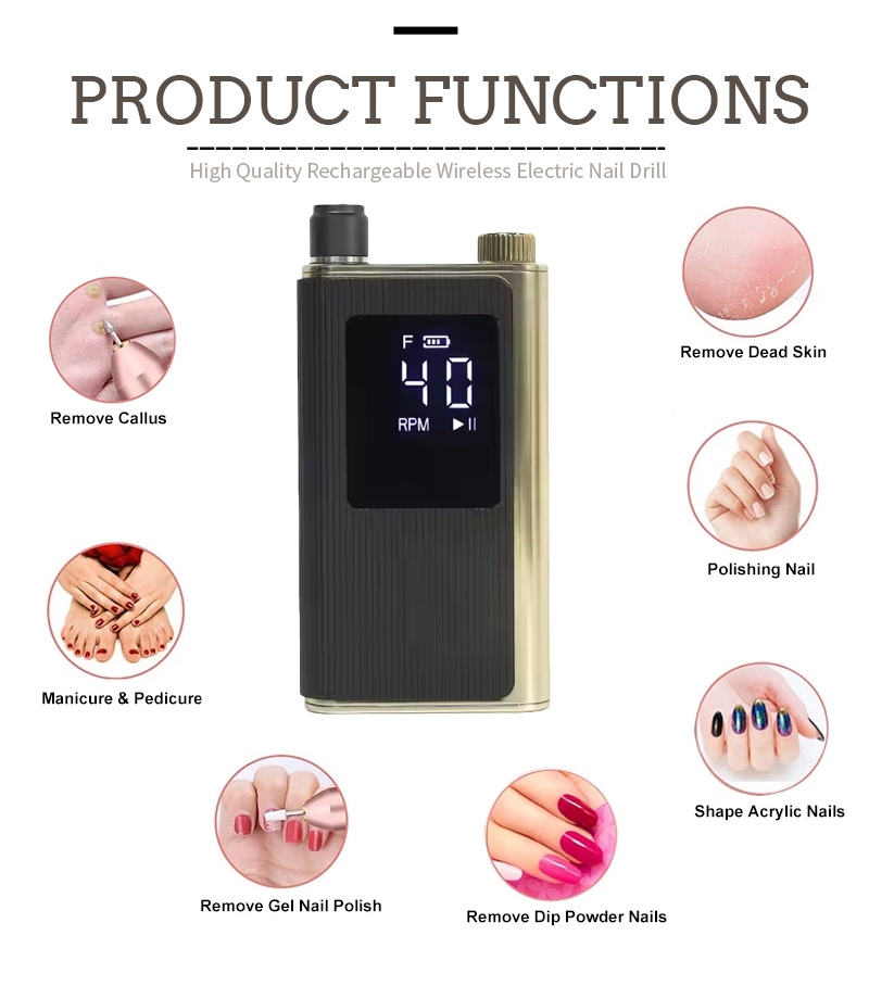 Dieser professionelle Hochgeschwindigkeits-Nagelbohrer mit 40.000 U/min hat 2 Farben zur Auswahl: Schwarz/Weiß/Grau/Blau/Rot/Rosa/Orange, bunte Farben.