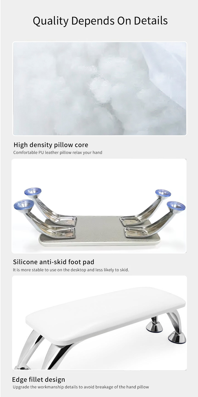 Langlebig genugShenzhen Ruina Optoelectronics Co., Ltd. hält als Chinas führender Hersteller, Lieferant und Exporteur von weichen und bequemen Maniküre-Handauflagen konsequent an der Philosophie des Strebens nach perfekter Qualität fest. Unser