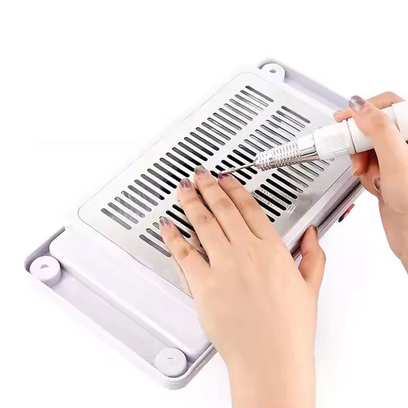 DerDesktop-eingebetteter Nagelstaubsammler ist eine eingebaute Staubabsaugeinheit, die direkt in den Arbeitsplatz eines Salons eingebaut werden kann. Im Gegensatz zu tragbaren Einheiten, die auf dem Schreibtisch stehen, schafft dieses eingebettete Modell einen nahtlosen, aufgeräumten Arbeitsplatz. Es fängt Acryl- und Gelstaub beim Feilen und Formen an der Quelle ein und verhindert so, dass sich in der Luft befindliche Partikel auf Oberflächen absetzen oder von Technikern und Kunden eingeatmet werden.