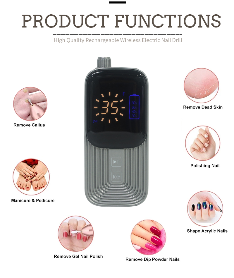 Nagelbohrer-Set, elektrische Feile, professionell, 65 W, 35.000 U/min