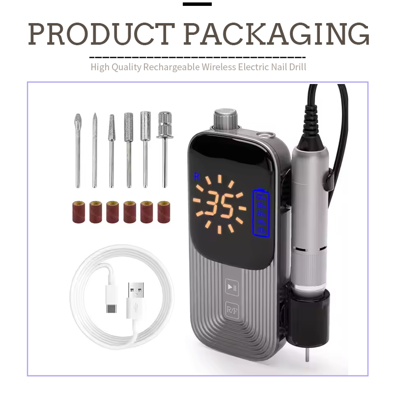 Nagelbohrer-Set elektrisch zum Entfernen von Gel-Nagellack, 65 W, 35.000 U/min