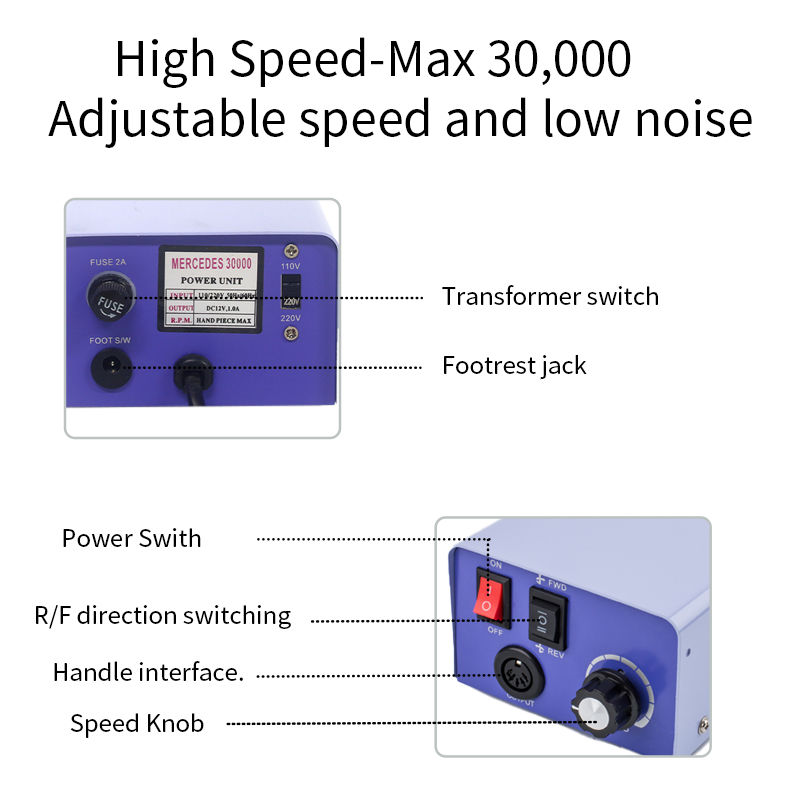 Elektrischer Nagelbohrer, nicht leicht zu beschädigendes Handstück, 65 W, 35.000 U/min