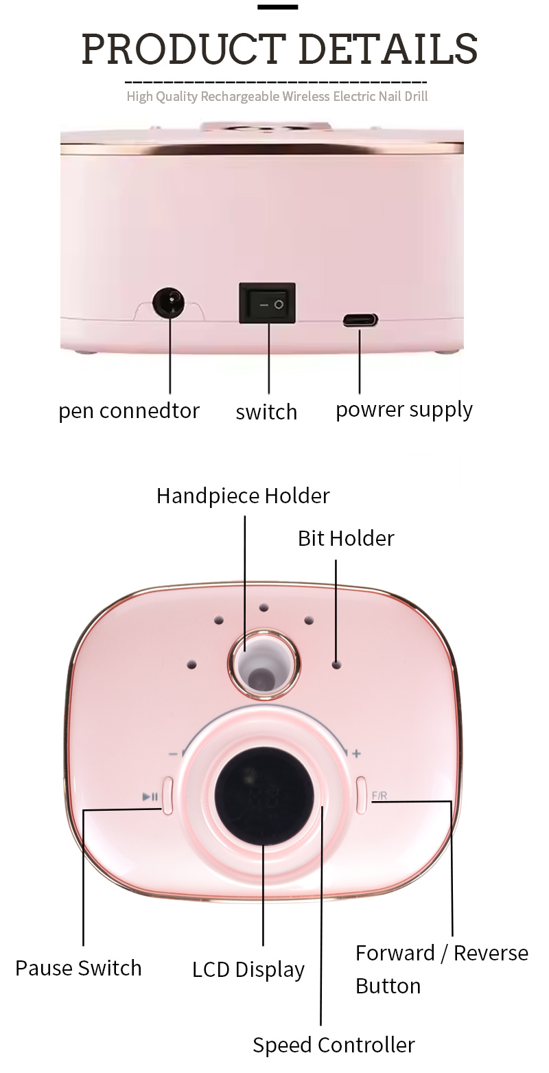 Wiederaufladbares Nagelbohrer-Set mit leistungsstarkem Handstück, 45 W, 35.000 U/min