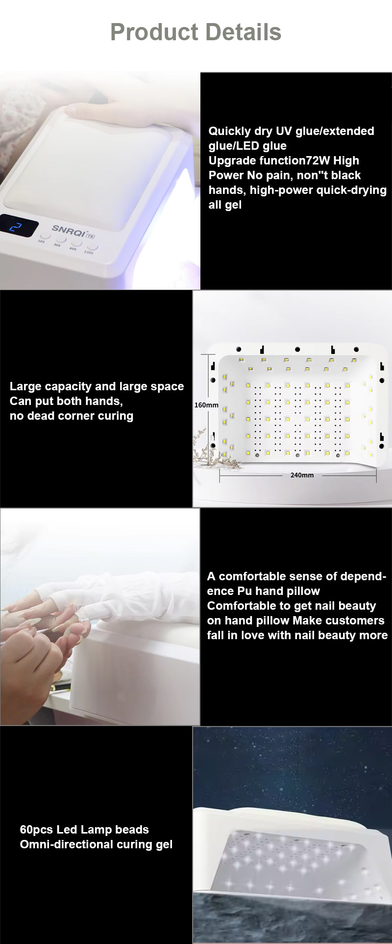• Hochleistungs-LED-Lampen für schnelles Aushärten des Gels in 10 Sekunden