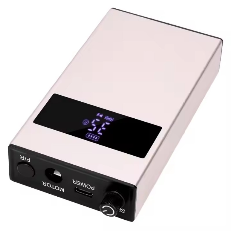 Das Display-Design dieses geräuscharmen, tragbaren Nagelbohrer-Sets verfügt über einen Ein-/Ausschalter und eine Vorwärts-/Rückwärtsdrehung für die Aktivierung mit nur einem Knopfdruck, eine Schnellladebuchse unten, eine austauschbare Bohrbuchse oben und eine in drei Positionen einstellbare Geschwindigkeit, um unterschiedlichen Anforderungen gerecht zu werden.