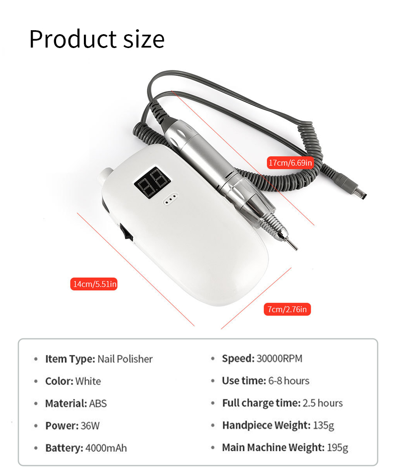 Notwendiges Nagelbohrer-Set, elektrisch, 65 W, 35.000 U/min