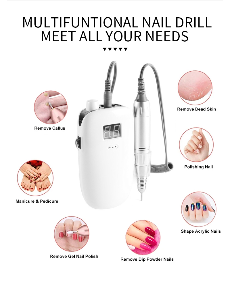 Nagelbohrer-Set, elektrische Feile, professionell, 65 W, 35.000 U/min