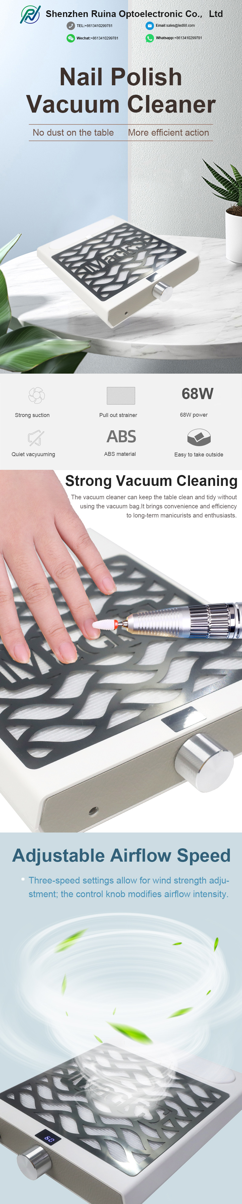 한국어Shenzhen Ruina Optoelectronic Co., Ltd. ein führender Hersteller, Lieferant und Exporteur von Nagelstaubsammlern mit Handauflage in China. Wir streben nach perfekter Produktqualität, so dass viele Kunden mit unserem Nagelstaubsammler mit Handauflage zufrieden sind. Extremes Design, hochwertige Rohstoffe, hohe Leistung und wettbewerbsfähige Preise sind das, was jeder Kunde wünscht, und das können wir Ihnen auch bieten. Selbstverständlich gehört auch unser perfekter After-Sales-Service dazu.