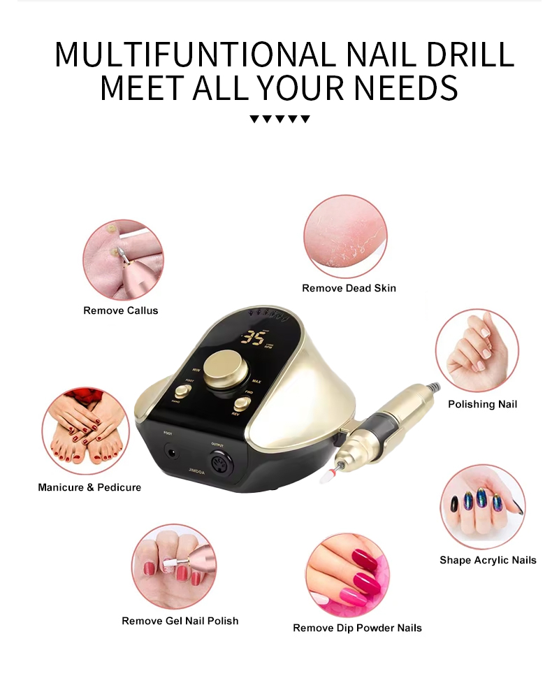Nagelbohrer-Set elektrisch zum Entfernen von Gel-Nagellack, 65 W, 35.000 U/min