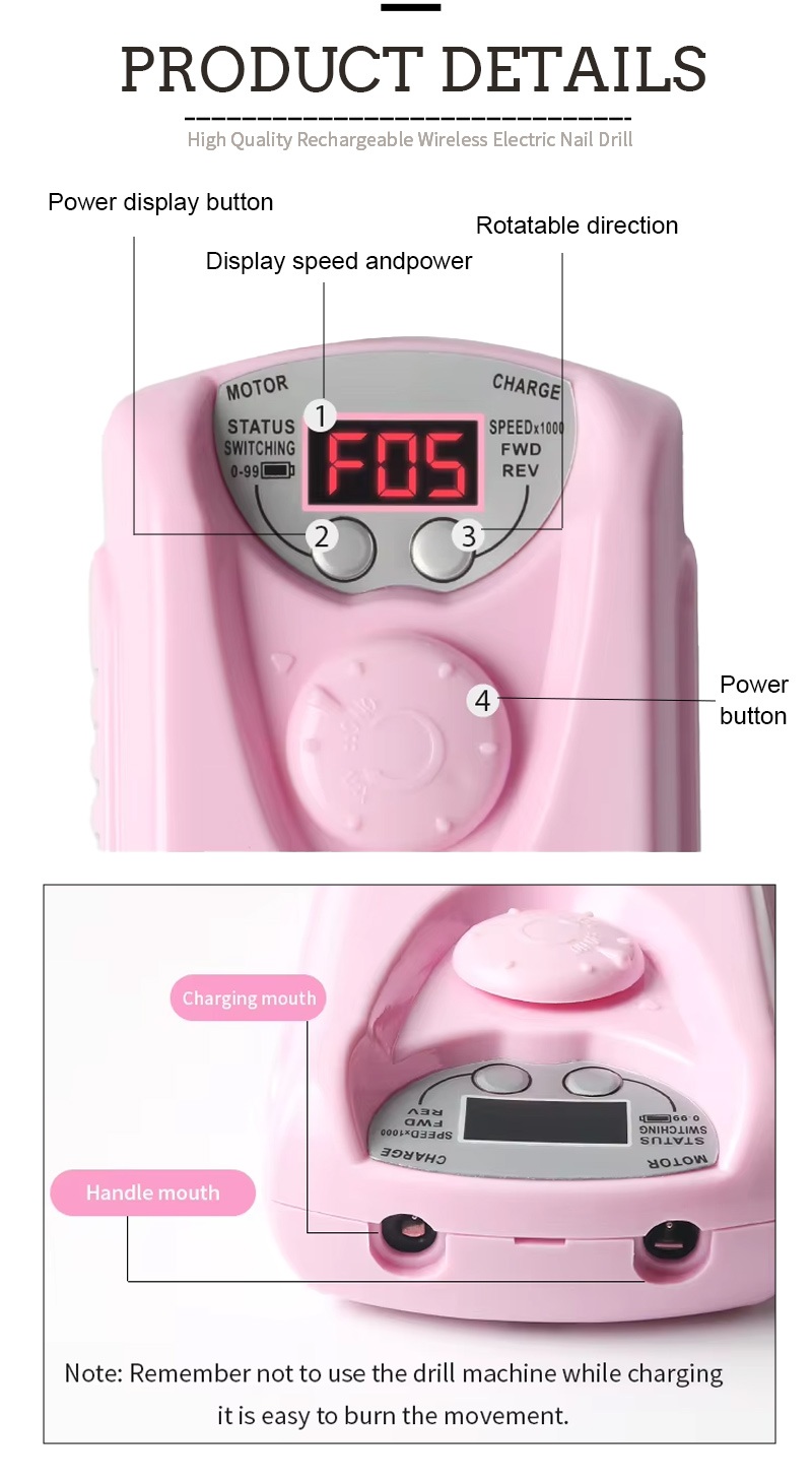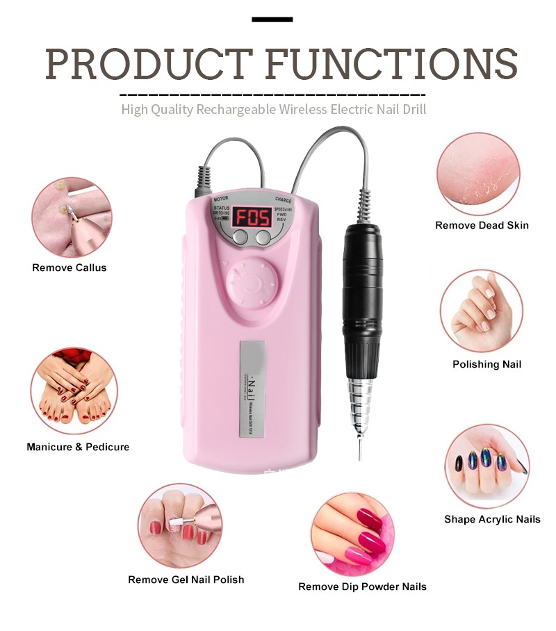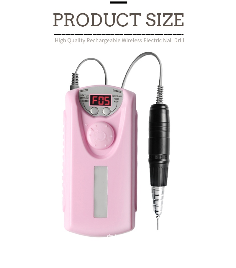 Dieser professionelle kabellose elektrische Nagelbohrer hat 2 Farben zur Auswahl: Schwarz/Weiß/Grau/Blau/Rot/Rosa/Orange, bunte Farben.