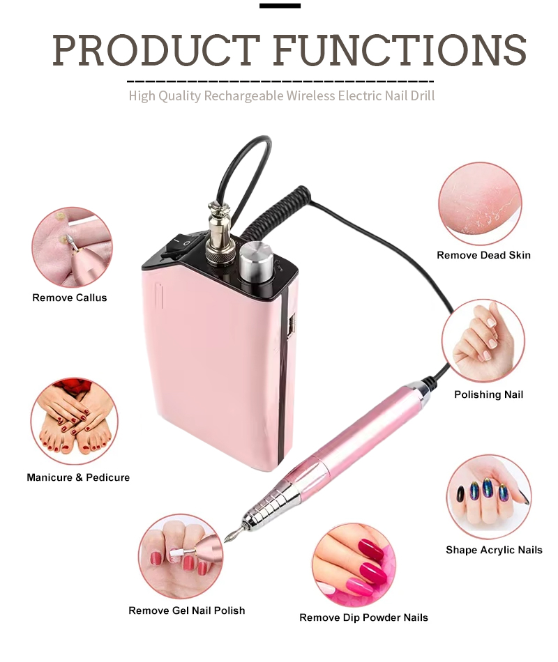 Nagelbohrer-Set, elektrische Feile, professionell, 65 W, 35.000 U/min