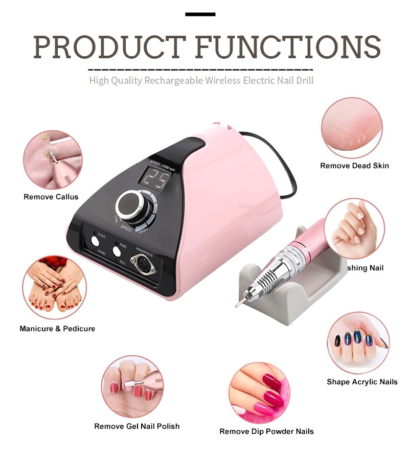 Diese professionelle tragbare Nagelbohrmaschine mit 35.000 U/min hat 2 Farben zur Auswahl, Schwarz/Weiß/Grau/Blau/Rot/Rosa/Orange, bunte Farben.