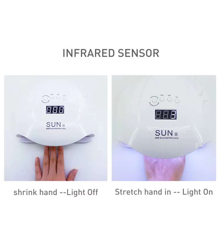 Die schnell trocknende Gel-Nagellampe verfügt über eine Infrarot-Smart-Sensing-Technologie, die automatisch aufleuchtet, wenn sich die Hände nähern, und ausschaltet, wenn sich die Hände entfernen – so entfällt das lästige wiederholte Drücken von Tasten und spart Zeit und Mühe. Hochleistungs-Backkleber erfordert keine lange Wartezeit und spart Zeit und Mühe.