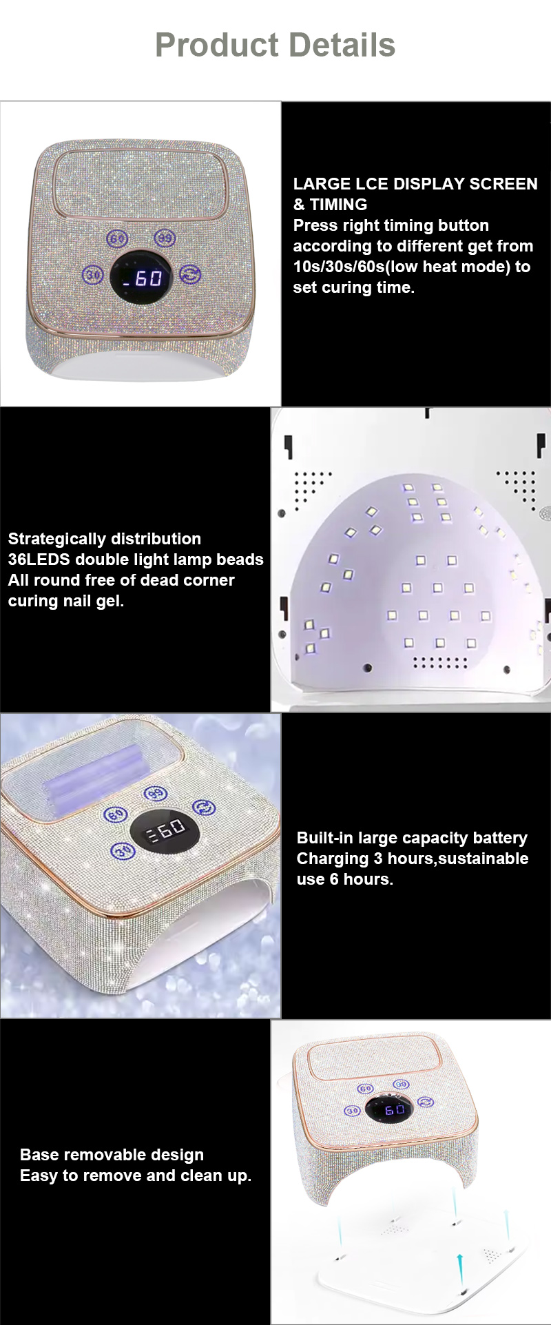 • Hochleistungs-LED-Lampen für schnelles Aushärten des Gels in 10 Sekunden