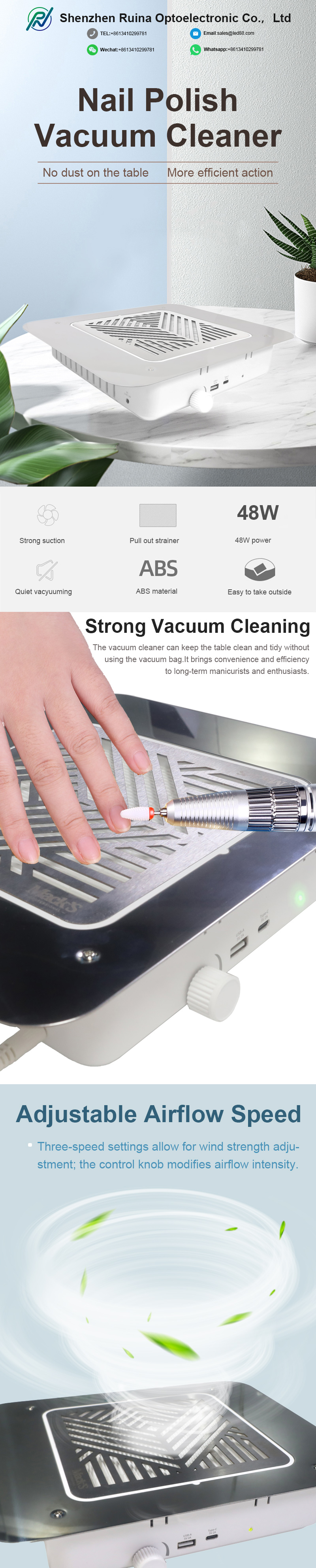 한국어Shenzhen Ruina Optoelectronic Co., Ltd. ein führender Hersteller, Lieferant und Exporteur von Silent Nail Dust Collector in China. Wir streben nach perfekter Produktqualität, so dass viele Kunden mit unserem Silent Nail Dust Collector zufrieden sind. Extremes Design, hochwertige Rohstoffe, hohe Leistung und wettbewerbsfähige Preise sind das, was jeder Kunde wünscht, und das können wir Ihnen auch bieten. Selbstverständlich gehört auch unser perfekter After-Sales-Service dazu.
