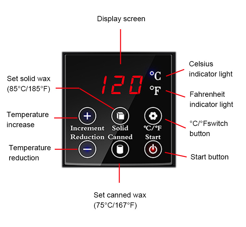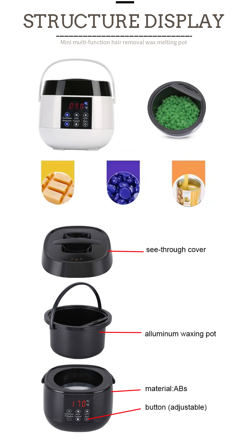Eine große Kapazität zum Schmelzen einer Vielzahl von Wachsbohnen. ABS-Kunststoffschale, hochtemperaturbeständig, die Schale ist glänzender.