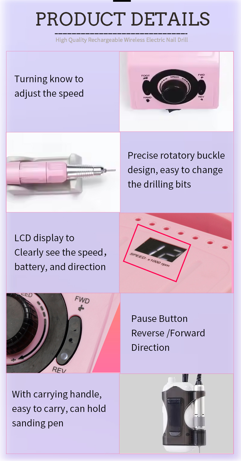 Tragbares Nagelbohrset elektrisch mit leistungsstarkem Motor 65 W 35.000 U/min